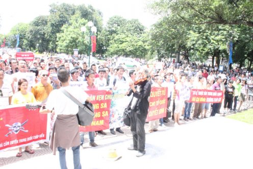 Thế là người dân đi biểu tình chống Trung Quốc xâm lược.